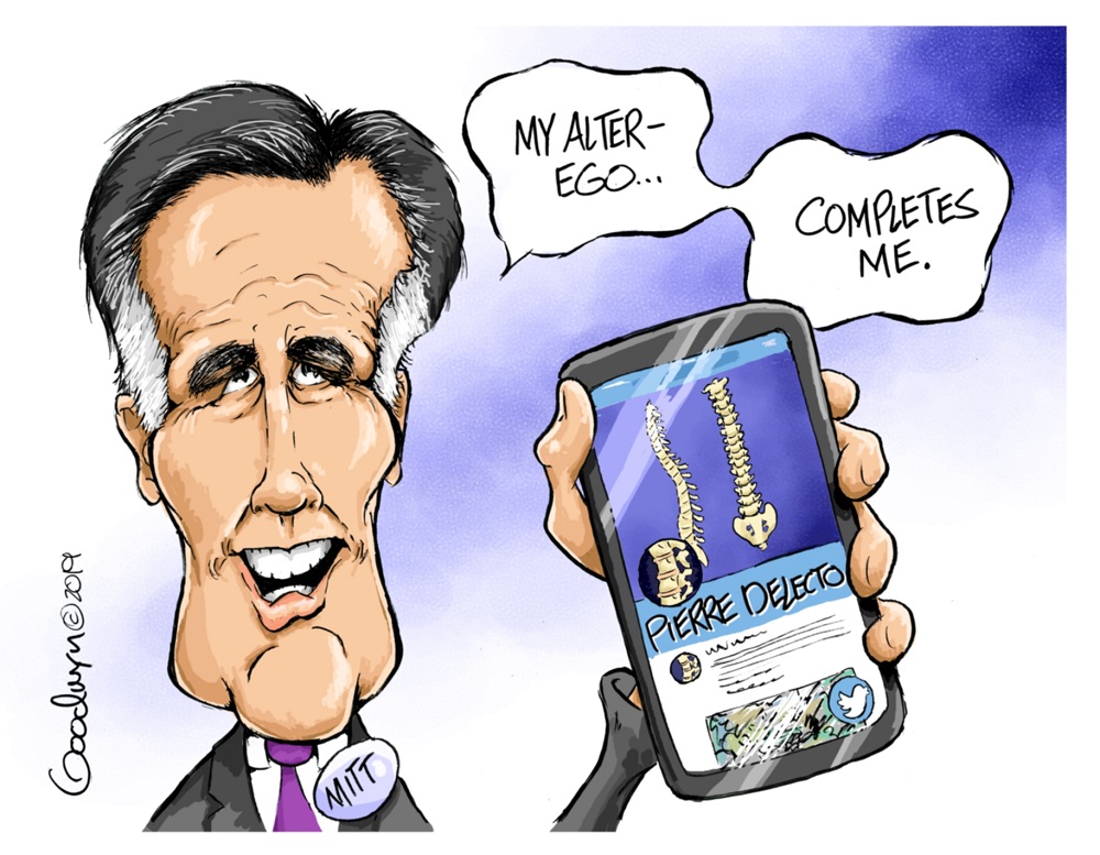 Since he needs a nom de plume for tweeting why not something French? And Pierre Delecto is born. “C’est moi” exclaimed Romney, because that’s another French term Pierre would use.
