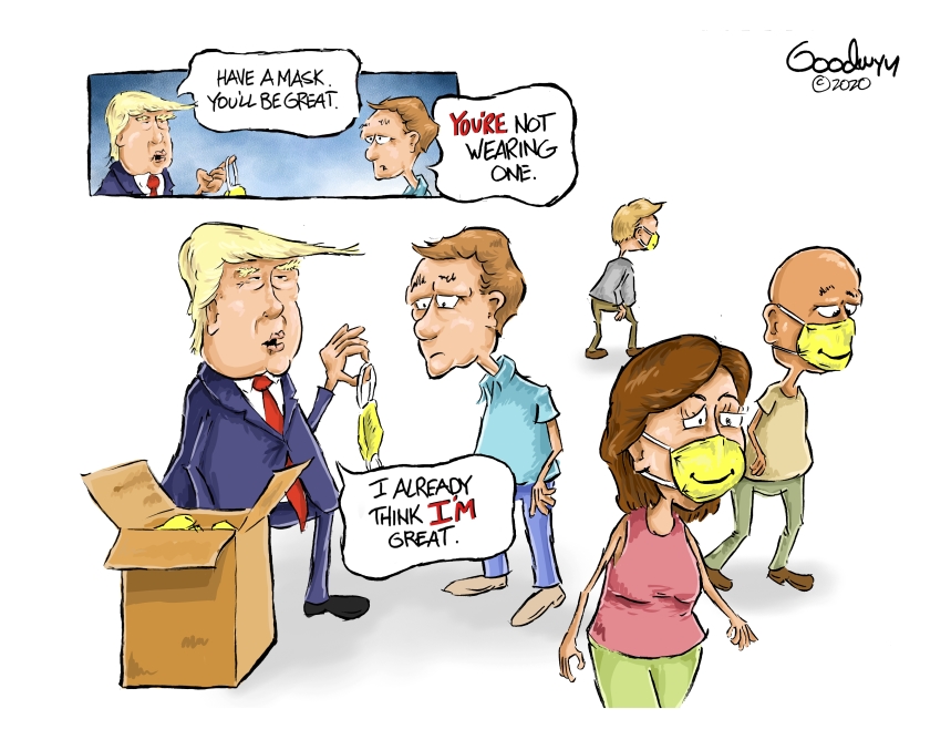 This entry was posted in Health, Trump and tagged Covid-19, covid-19 masks, smiley face, Trump cartoon.
